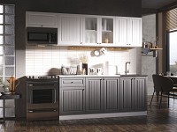 Шкафы и столы оснащены необходимым количеством отделений и полок, где можно разместить бытовые и столовые принадлежности.