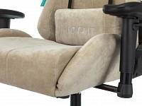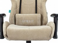 Обивка выполнена из приятной на ощупь ткани. Кресло оснащено небольшой подушечкой и подголовником, которые могут использоваться как отдельные аксессуары.