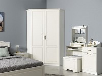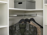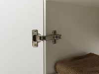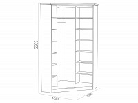 Внутреннее наполнение представлено большим количеством полочек и одной продольной штангой, такое решение поможет организовать удобную систему хранения всех предметов гардероба.