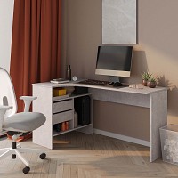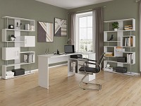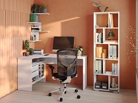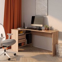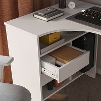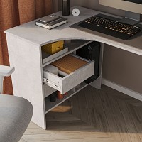На широкой столешнице найдется место для большого монитора, клавиатуры или ноутбука, а также сопутствующей техники. В выдвижных ящиках и открытых отделениях удобно хранить книги и канцелярию.