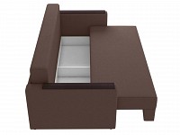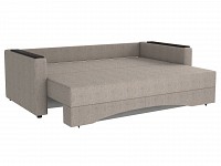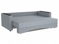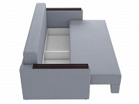 Подколотники с накладками можно использовать в качестве столишниц, а с помощью приспинных подушек — регулировать глубину посадки. Механизм трансформации легко превращает диван в полноценное спальное место и подходит для ежедневного сна. Специальная пристенная планка добавляет модели прочности и защищает стену от потертостей.