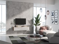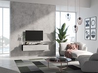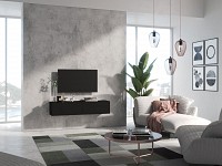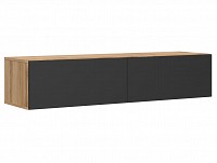 Отсутствие внешней фурнитуры визуально облегчает конструкцию, придавая облику монолитность. Отделения за откидными дверцами обеспечат место для хранения домашней видеотеки и других вещей.