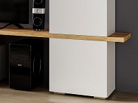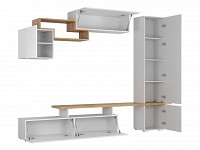 Оригинальная фрезеровка, отсутствие ручек и необычная геометрия делают мебель по-настоящему стильным элементом интерьера. Набор отлично подходит для обустройства небольшой комнаты.