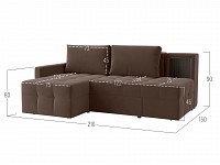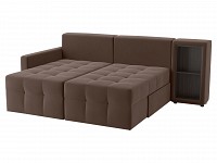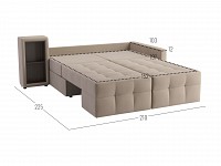 Секции можно расположить как под углом, так и параллельно друг другу, для максимально комфортного отдыха. Встроенная тумбочка образует удобное место для хранения пульта, книги или футляра с очками. На время сна диван без труда превращается в просторное спальное место, при этом специальная планка защищает от контакта со стеной. Для постельных принадлежностей предусмотрен небольшой ящик для белья.