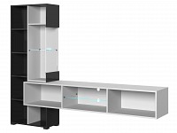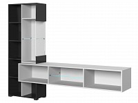 Внутреннее наполнение представлено множеством полок. Открытая ниша в центральной части разделена на две секции стеклянной полкой, которая дарит расположенным на ней предметам эффект парения.