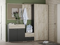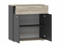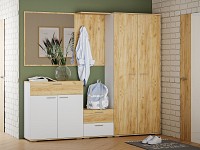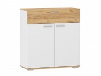 Вверху удобно хранить ключи, аксессуары и другие мелочи, без которых не обойтись в любой квартире, а на полках — более габаритные вещи. Гладкие фасады и лаконичная фурнитура подчеркивают минималистичный дизайн модели.