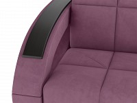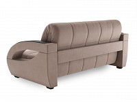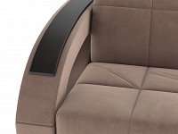 Округлые подлокотники дополнены декоративными накладками, а спинка и сиденье — стильной стежкой. Со всех сторон используется основной материал, поэтому диван отлично подходит для зонирования. Обивка приятна на ощупь и легко поддается сухой чистке.