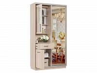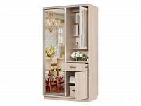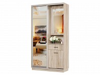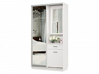 Раздвижной фасад скрывает вместительное отделение с выдвижной штангой для вешалок и ниши для головных уборов и обуви. За распашными дверцами расположены полки для удобного хранения. Выдвижной ящик подойдет для быстрого доступа к полезным мелочам. Зеркальное полотно в полный рост позволит в деталях оценить подобранный образ.