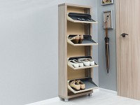 Продуманная конструкция обеспечит синхронное открытие лотков и позволит удобно разместить всю необходимую обувь.