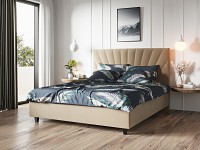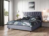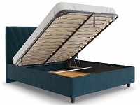 Благодаря мягкой обивке модель смотрится очень уютно и располагает к отдыху, а декоративная строчка выступает лаконичным акцентом изголовья. Основание с гибкими ламелями легко поднимается, открывая доступ к ящику для белья. Внутри удобно хранить постельные принадлежности, теплые пледы или сезонные вещи.
