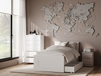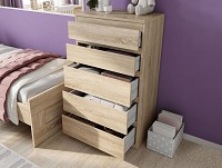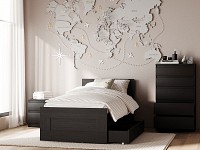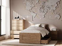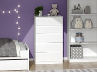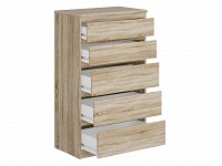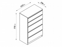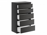 Внутри удобно хранить одежду, белье, игрушки и другие нужные вещи. Несколько выдвижных ящиков позволяют удобно распределить содержимое по разным категориям. Отсутствие внешней фурнитуры подчеркивает минималистичный стиль модели.