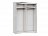 За дверями скрыты две вместительные секции с продольными штангами для вешалок и две антресольные полки. Во внутреннее наполнение опционально можно добавить полки из соответствующего комплекта. Фасады дополнены зеркальными полотнами в полный рост, которые позволят в деталях оценить подобранный образ и сделают помещение визуально просторнее и светлее.