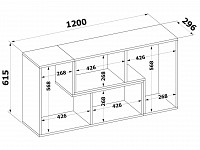 Обладает несколькими вариантами сборки и дизайна, при этом каждый элемент должен быть установлен в горизонтальном положении. Открытые ниши создают ощущение легкости и воздушного пространства. Тумба очень функциональная и позволяет разместить в пределах своих габаритов всю необходимую технику и декор. Полезное решение для любого дома или квартиры!