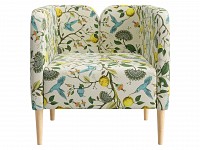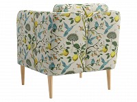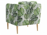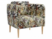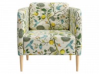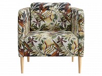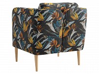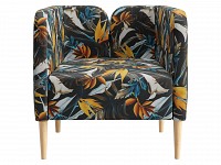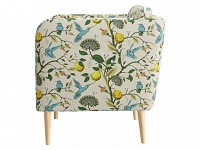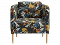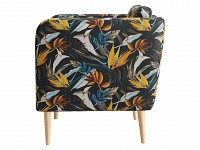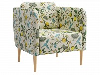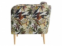 Яркая обивка с растительным принтом идеально сочетается с высокими ножками из массива. Такой дизайн делает обстановку ближе к природе и наполняет ее индивидуальностью. Съемная подушка позволяет регулировать глубину сиденья для большего комфорта.