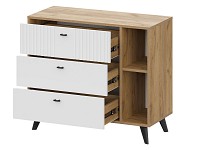 Выдвижные ящики на шариковых направляющих двигаются плавно и бесшумно. Доводчики также исключают хлопки и резкое закрывание, что значительно продлевает срок службы. Верхний фасад декорирован фрезеровкой.