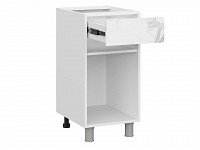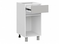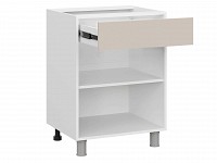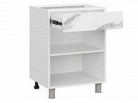 Комбинированное наполнение с выдвижным ящиком и глубокой полкой делает модуль универсальным на любой кухне. Ухаживать за столом легко: поверхность устойчива к повреждениям и без труда очищается от загрязнений.