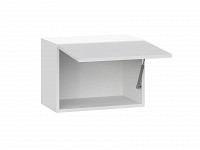 Откидная дверца оснащена газовыми амортизаторами, которые фиксируют поднятый фасад так, чтобы не приходилось удерживать его самостоятельно. Неглубокий модуль не перегружает интерьер.