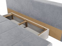 Конструкция равномерно распределяет нагрузку, а механизм трансформации мгновенно превращает диван в полноценную спальную зону. Модель также предусматривает вместительный короб для хранения постельных принадлежностей.