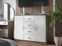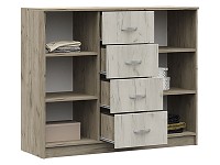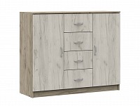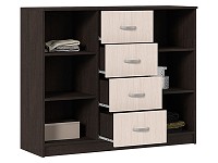 Выдвижные ящики по центру помогут аккуратно разместить разные мелочи, а за дверцами поместятся более объемные предметы гардероба, документы или детские игрушки.