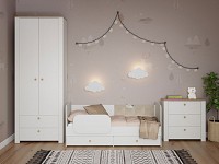 Такое наполнение отлично подходит для хранения повседневных вещей. Лаконичное оформление в светлом оттенке не перегружает интерьер и легко сочетается с другой мебелью в любой цветовой гамме.