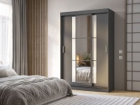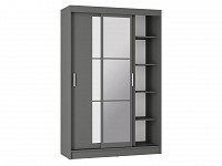 Внутреннее наполнение в виде продольных штанг и полок позволит рационально разместить одежду из деликатных тканей и сложенные предметы гардероба, а внизу можно поставить габаритные вещи. Зеркальное полотно визуально расширит пространство.