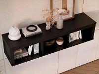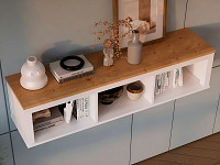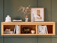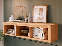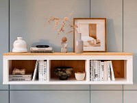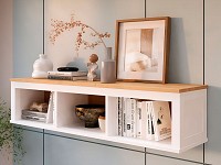 Универсальный дизайн отлично сочетается с разными интерьерными решениями. На полке удачно смотрятся декор, книги и милые безделушки, которые наполняют обстановку уютными деталями.