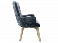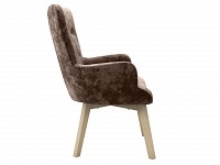 Оптимальный угол наклона спинки и удобные подлокотники создают идеальные условия для комфортного времяпрепровождения. Основание кресла выполнено из прочного и долговечного массива. Бархатистая обивка дарит приятные тактильные ощущения и нетребовательна в уходе.
