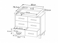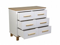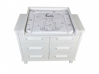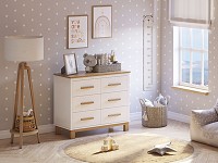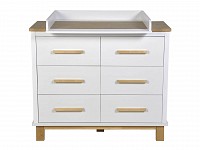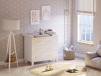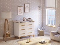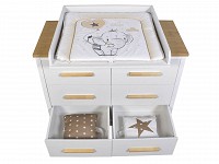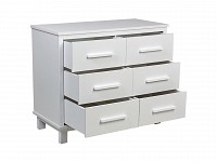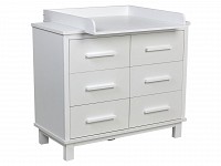 Изделие подойдет для пеленания малышей благодаря возможности установки универсальной пеленальной рамы с бортиками (в зависимости от комплектации), которая легко снимается. В шести вместительных ящиках на шариковых направляющих скрытого монтажа, которые обеспечивают плавный, бесшумный ход и не позволят ящику выпасть при движении благодаря незаметным креплениям под дном, поместятся все детские вещи и гигиенические принадлежности.