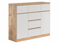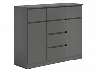 Модель имеет два отделения с полками за распашными дверцами и шесть ящиков, которые плавно и бесшумно выдвигаются на всю глубину.