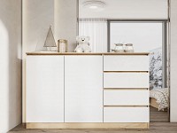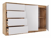 Комбинированное наполнение представлено вместительным отделением с полками за распашными дверцами и ящиками, которые обладают плавным бесшумным ходом и выдвигаются на всю глубину, обеспечивая удобный доступ к содержимому.