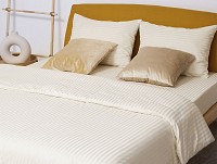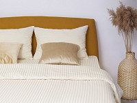 Постельное белье выполнено из ткани сатин-страйп плотностью 125 г/кв. м (20% хлопок + 80% бамбук).