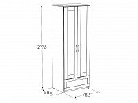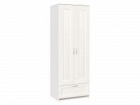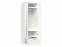 На широких полках удобно хранить объемные одеяла, пледы и сезонные вещи, а в ящике — разные мелочи и небольшие предметы гардероба.