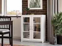 Дверцы со стеклянными вставками позволяют разместить красивую посуду, фарфор и другие предметы декора.