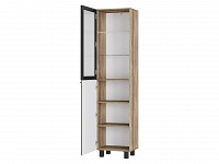 На верхних полках можно расположить фотографии, книги и стильный декор, который украсит интерьер. Стеклянная дверца создает эффект свободного пространства, при этом защищает содержимое от пыли.