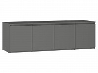Внутри расположены три отделения, где удобно спрятать содержимое от пыли. На фасадах нет фурнитуры: дверцы удобно открываются за скошенный под углом край. Модель можно установить в качестве антресоли для шкафов одноименной серии.