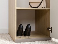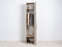 Внутри расположены удобные полки, которые подходят для хранения различных вещей. Изящная фрезеровка и деревянная ручка придают модели индивидуальность.