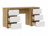 Под просторной столешницей расположены выдвижные ящики, где удобно хранить канцелярские принадлежности и другие необходимые вещи, что позволяет поддерживать порядок на основной поверхности и обеспечивает быстрый доступ к содержимому.