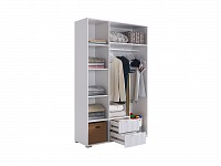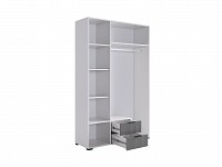 Отделение со штангой, полки и выдвижные ящики обеспечивают достаточно места для хранения одежды, игрушек и других вещей. Благодаря вертикальной фрезеровке фасадов модель выглядит привлекательно и современно.