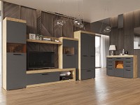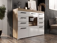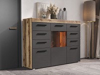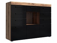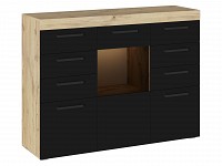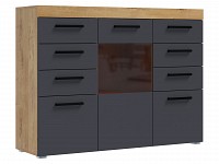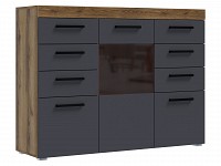 Выдвижные ящики обеспечивают быстрый доступ к содержимому. Вставка из затемненного стекла создает необычный акцент в интерьере и позволяет продемонстрировать ценные книги или предметы декора. Современный дизайн станет частью меблировки комнаты.