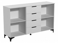 Выдвижные ящики с плавным ходом гарантируют бесшумное открывание. Фрезеровка на фасадах и высокие ножки станут уютными акцентами интерьера.