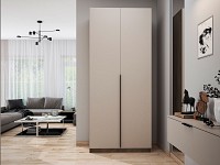 Внутреннее пространство представлено отделением со штангой, где удобно расположить платья, костюмы и пиджаки. На полках найдется место для футболок, джинсов и текстиля. Лаконичная фурнитура в виде черной матовой ручки гармонично адаптируется под современный интерьер.