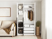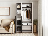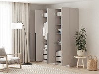 Узкие вытянутые ручки выполняют как основную, так и декоративную функцию. В комплектации с ящиками модель подходит для любых предметов гардероба: от верхней одежды до белья и аксессуаров. Стандартное наполнение оставляет больше места для габаритных вещей.