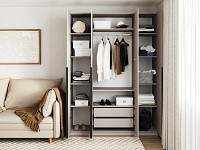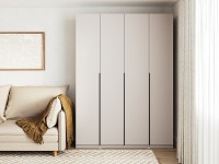 Можно выбрать один из двух вариантов наполнения: с просторной нишей по центру или с ящиками для белья и аксессуаров. В дизайне сделан акцент на простую геометрию, которую подчеркивают тонкие контрастные ручки.
