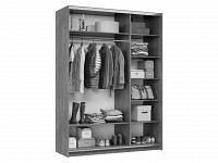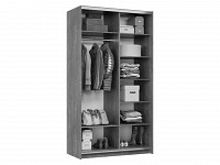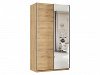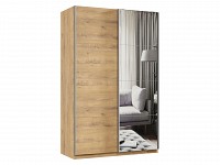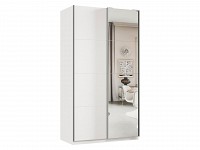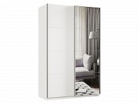 Внутреннее пространство представлено полками для сложенных вещей и хромированной штангой для вешалок. Один из фасадов дополнен зеркальным полотном, которое позволит оценить внешний вид и сделает помещение визуально просторнее.