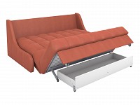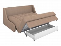 Узкие подлокотники позволяют интегрировать модель в небольшое пространство. Простой механизм быстро трансформирует диван в ровное спальное место. Прочный каркас выдерживает большие нагрузки и продлевает срок службы. Спинка обита основной тканью, поэтому диван можно расположить в любой точке комнаты.