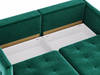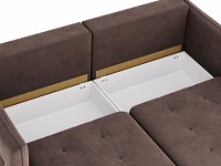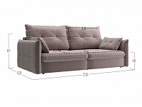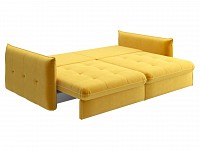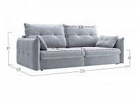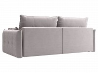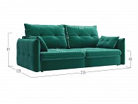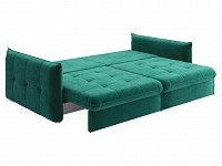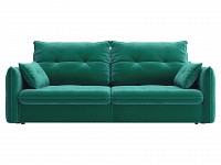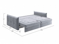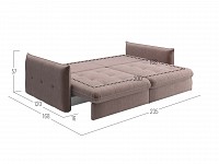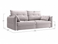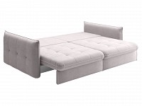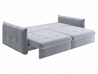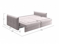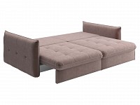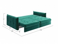 Плавные изгибы подчеркнуты декоративным кантом. Подушки, украшенные каретной стяжкой, помогут регулировать глубину сиденья и занять наиболее удобное положение. Гладкий шелковистый материал обивки приятен на ощупь и обладает эффектом дорогой матовой фактуры. Модель безупречно выглядит со всех сторон и подойдет для зонирования комнаты. При помощи механизма трансформации диван легко превращается в ровное спальное место, по удобству сравнимое с полноценной кроватью. Вместительный короб позволит хранить необходимые постельные принадлежности.