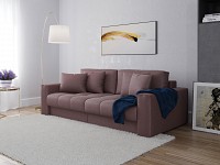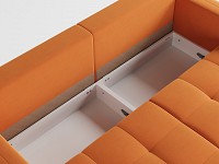 Приспинные и декоративные подушки позволят регулировать глубину посадки и занять наиболее удобное положение, а на широкие подлокотники можно положить пульт от телевизора или телефон. Конструкция равномерно распределяет нагрузку, а механизм трансформации мгновенно превращает диван в полноценную спальную зону. Модель предусматривает вместительный короб для хранения постельных принадлежностей. Спинка дивана выполнена в основной ткани, что дает возможность использовать его для зонирования пространства.