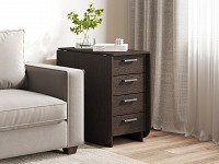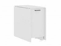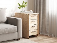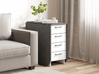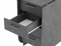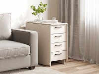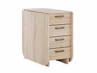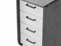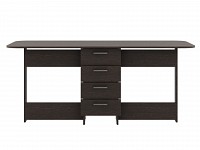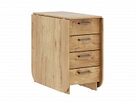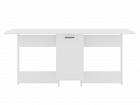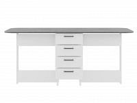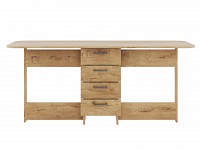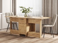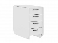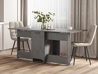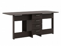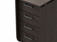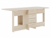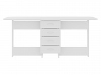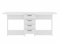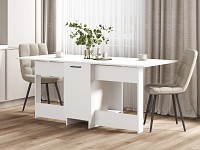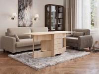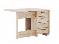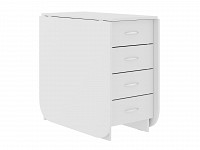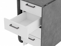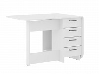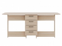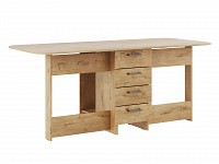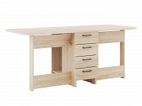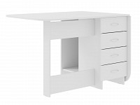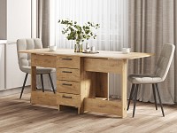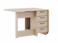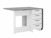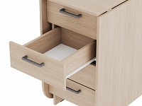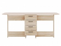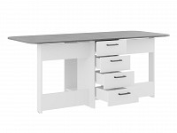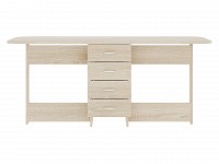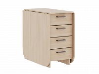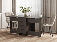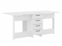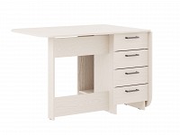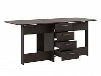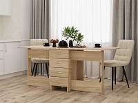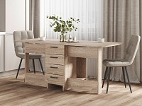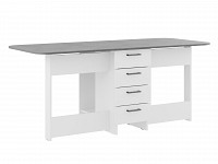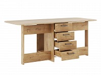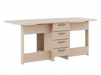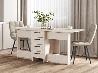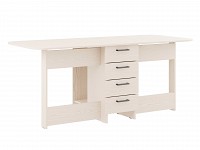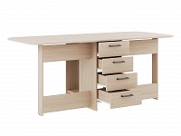 Конструкция предусматривает эргономичную тумбу с четырьмя выдвижными ящиками или просторными нишами за распашной дверцей, где удобно хранить столовые приборы, скатерти и другие вещи.