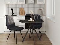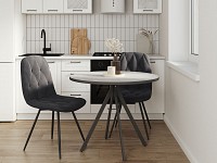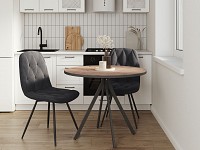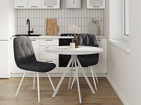 Компактная модель гармонично сочетается с разными стилями интерьера. Круглая столешница практична и удобна в эксплуатации: не впитывает влагу, не портится от горячей посуды и легко моется. Прочное конусовидное подстолье обеспечит устойчивость, а специальные подпятники сохранят напольное покрытие.