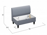 Компактная модель сэкономит пространство без ущерба для комфорта. Под сиденьем расположен короб для хранения, что делает диван еще практичнее. Минималистичный дизайн удачно встраивается в разные интерьерные решения.